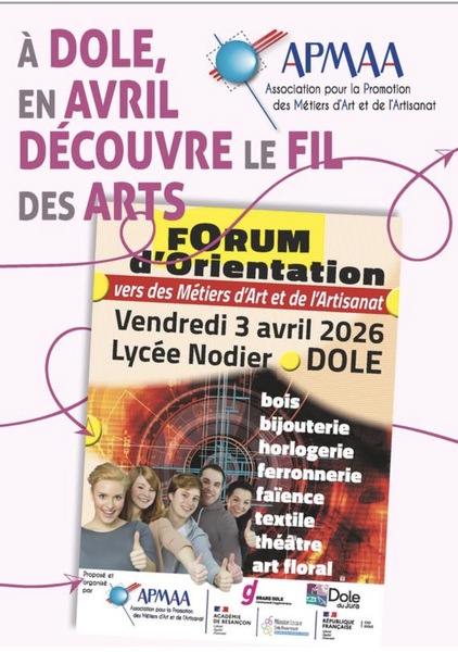 Le lycée Pierre VERNOTTE est à Dole ce vendredi 3 avril au Forum d'orientation vers des métiers d'art et d'artisanat. Venez nous rencontrer.